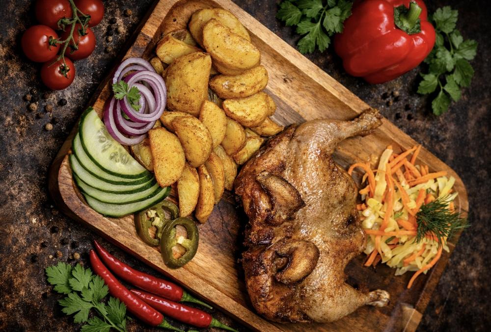 Хрустящая золотистая корочка скрывает нежную, сочную мякоть, пропитанную ароматами специй. Цыплёнок готовится по традиционной технологии — обжаривается под прессом, чтобы сохранить всю сочность и приобрести идеальную текстуру.